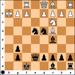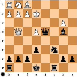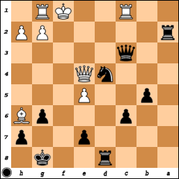 [ ...Qe3+ Kg2 Nf4+ ]