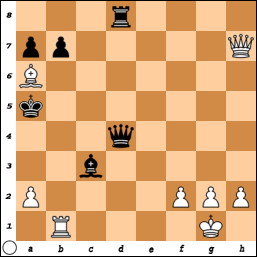 3r4/pp5Q/B7/k7/3q4/2b5/P4PPP/1R4K1 w - - 1 0