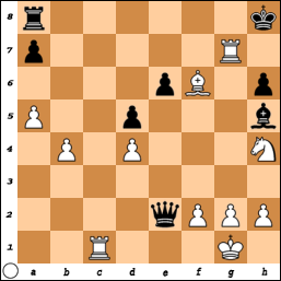 r6k/p5R1/4pB1p/P2p3b/1P1P3N/8/4qPPP/2R3K1 w - - 1 0