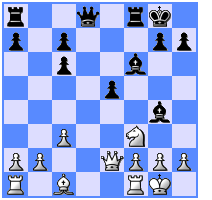 [ ...Bc5 Be3 Ng4 Qg3 Nxe3 Qxg7 Nf5+ ]