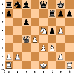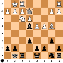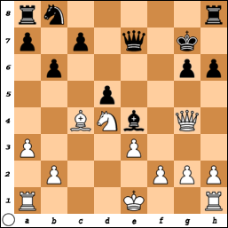 [ f3 Ng5 Bxg5 if Qxg5 f4 Qe7 Bxb7 ]