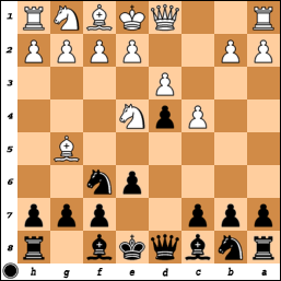 [ ...Nxe4 Bxd8 Bb4+ Qd2 Bxd2+ Kd1 Nxf2+ ]