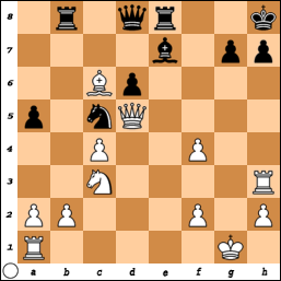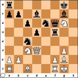 [ Bh3 Qxh3 Nxf6+ Kg7 Nxe8+ ]