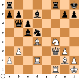 [ ...Bxh3 Bxh3 Nf3+ if Kh1 Qh5 Qb3+ d5 or if Kg2 Qe4 Qb1 Qd5 ]