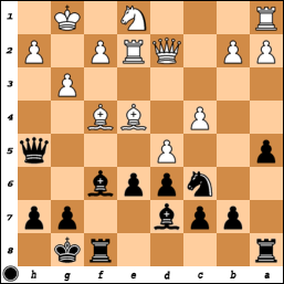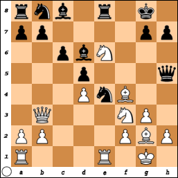 [ ...h3 Bf3 Bg4 Bxg4 Qxe4+ ]
