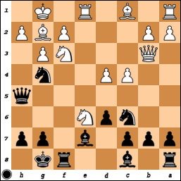 [ cxb6 Na5 Qa3 if cxb6 Qxf8# ]