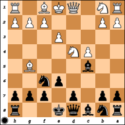 [ Be4 Bxf1 Qh6 f5 Ng5 ]