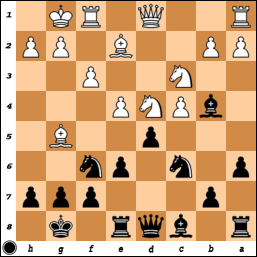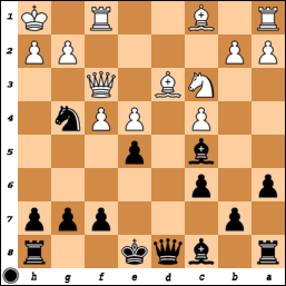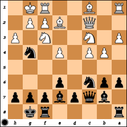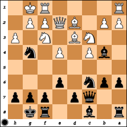 [ ...Nf4 Qe3 Qg5 g4 hxg3 ]