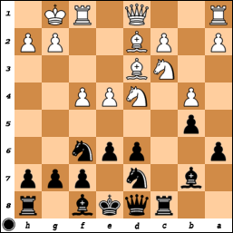 [ ...Qb6 Be2 e5 fxe5 dxe5 Kh1 exd4 ]