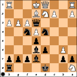 [ ...Qe3+ Kc2 Ncb4+ axb4 Nxb4+ Kb1 Bf5+ ]