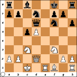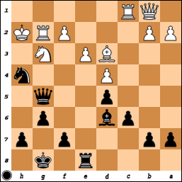 [ ...Qb6 if Qd4 Nxc3 Qxb6 axb6 ]