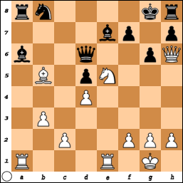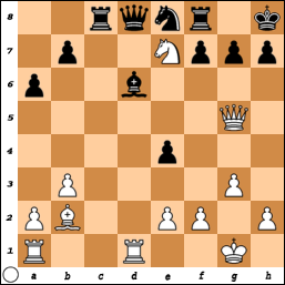 rn4kr/4bp1p/b2q2pQ/1B1pN3/3P4/1P6/2P2PPP/R3R1K1 w - - 1 0
