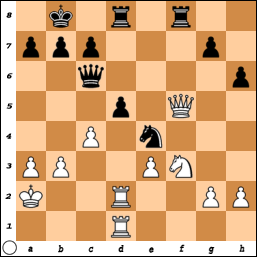 [ Bxe7 Qxe7 Nxd5 Qd6 Qxe4+ ]