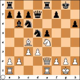 r1b5/ppqn1kp1/2p2n1p/4p3/1b2P2B/2N5/PPP1QPPP/3R1RK1 w - - 1 0