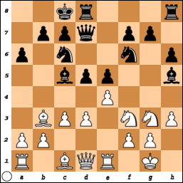 r1bq1rk1/ppn2pbp/2np2p1/6B1/2B1Q2P/2N2N2/PPP2PP1/R3K2R b KQ - 0 1