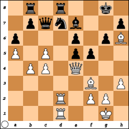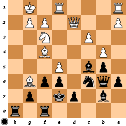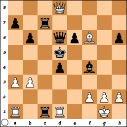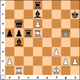 [ ...Re1+ Bf1 Rxf1+ Kxf1 Qb5+ ]
