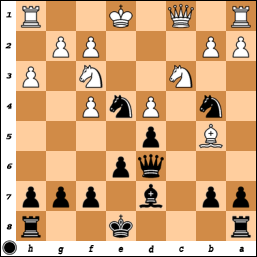 [ ...Qxe6 dxe6 Ne2+ Kf1 Nxd4 exf7 hxg4 ]