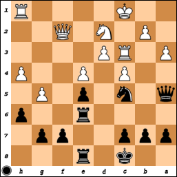 [ Ne5 if R4c7 Nexg6+ Kg8 Ne7+ ]