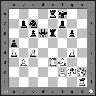 76) ...Qxh3+ Rh2 f2+ |