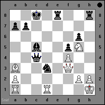 | 89) ...Nc4 if Qd5 Ne3+ or if Qxd4 Qc6+ Kg3 Qg6+ mates |