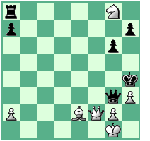 [ Nf5 Bxg3 Ne7+ Kf8 Nxc8 ]